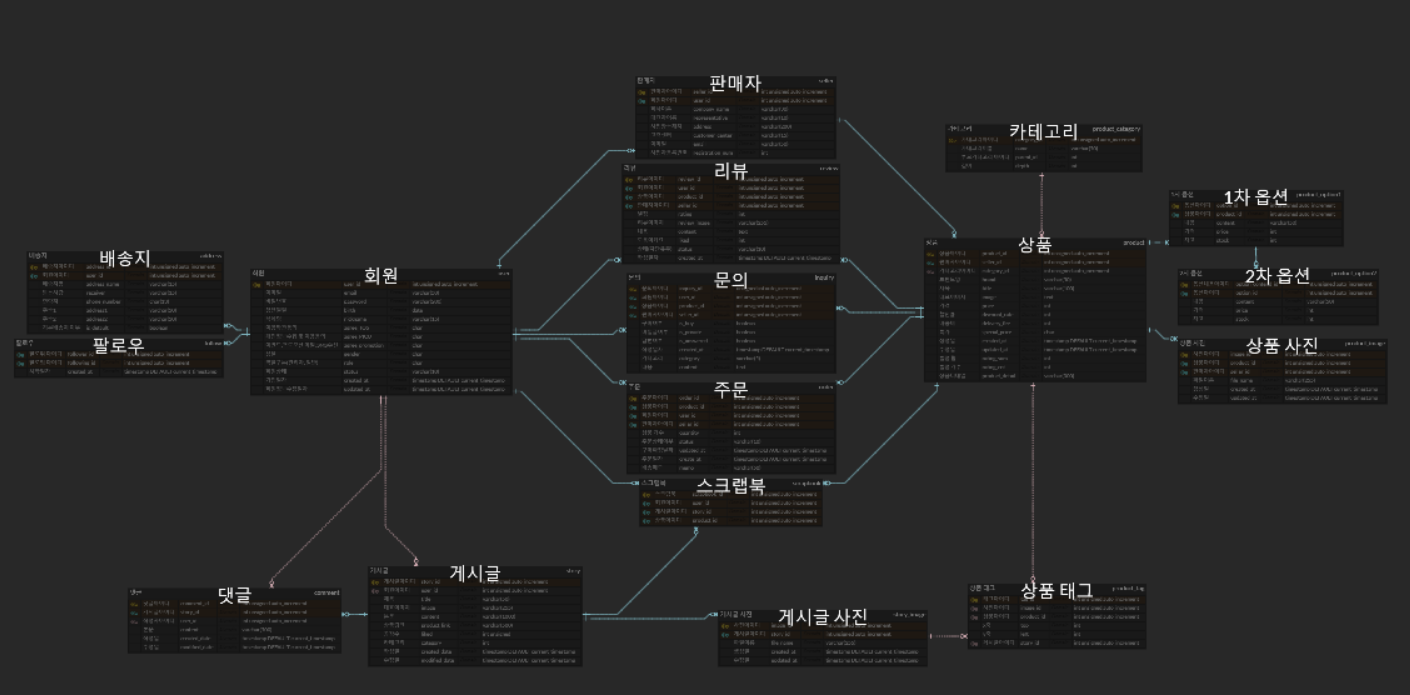 이렇게 최종적으로 ERD 를 그리며 확장성과 삭제, 수정에 대한 종속성 등 어떻게 서비스를 제공할 것인지에 대해 결정해야할 부분이 이렇게 많을 줄 몰랐다. 단순히 데이터를 잘 저장하기만 하면 되는 줄 알았는데, 데이터 저장 방식을 결정하는 순간부터 서비스의 방향이 결정됨을 깨달을 수 있었던 좋은 경험이었다....(ERD 설계에 이렇게 오래 걸릴 줄은 몰랐다..)