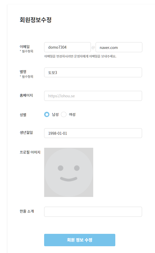 - 회원가입한 회원은 선택적으로 성별을 설정할 수 있다. (선택항목)