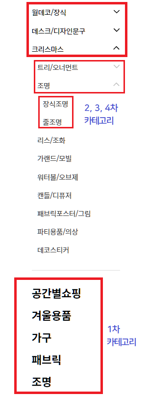 - 카테고리는 1, 2, 3차 카테고리가 있으며,
