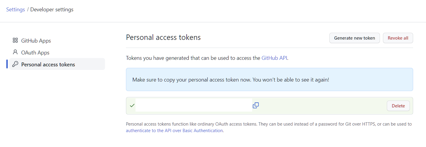 글에서 안내한대로 GitHub 에서 access token 을 발급받은 후