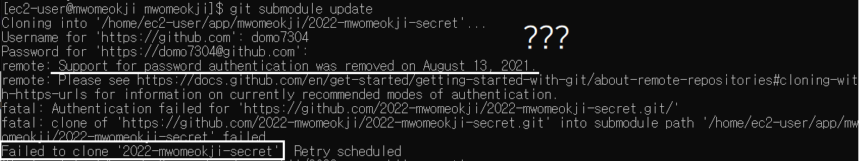 (2022.08.14.) 프로젝트를 EC2 에 올리기 위해 git clone 을 하고 submodule 을 가져오려 하던 중