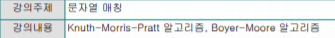 이번 2학기에 들을 과목들을 살펴보다 알고리즘 교과목 강의계획서를 보니 kmp알고리즘이 있었다. 문자열 매칭을 다룰 때마다 몇 번 듣기는 했었는데 이번 기회에 제대로 공부해보고자 한다.