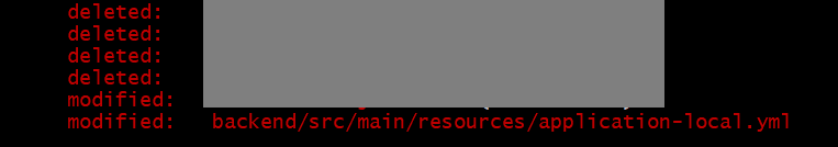 - git reset HEAD^ 로 commit 을 하나하나 내릴 때마다 git status 로 변경사항을 살펴보며 backend 폴더의 변경사항이 잡히는 지점까지 내려간 후, 변경이 발생한 파일을 원래대로 되돌리기