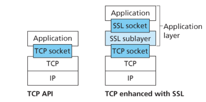 보안(confidentiality, data integrity, end-point authentication) 이 강화된 TCP 를 Secure Sockets Layer (SSL) 이라 부르며, 보통 SSL 과 함께 언급되는 Transport Layer Security (TLS) 는 국제 인터넷 표준화 기구 (IETF) 에 의해 SSL version 3 를 조금 수정하여 표준화한 것입니다. (해당 글에서는 편의상 SSL 로 통일하겠습니다.)
