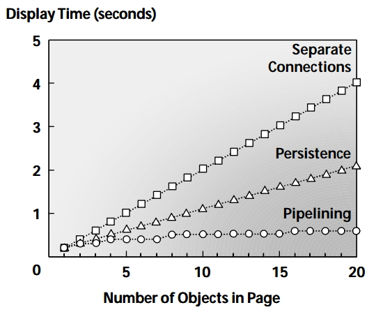 HTTP 1.0, HTTP 1.1(Persistence), HTTP 1.1(Persistence + Pipelining) 을 비교하면 위 이미지 같다고 한다.